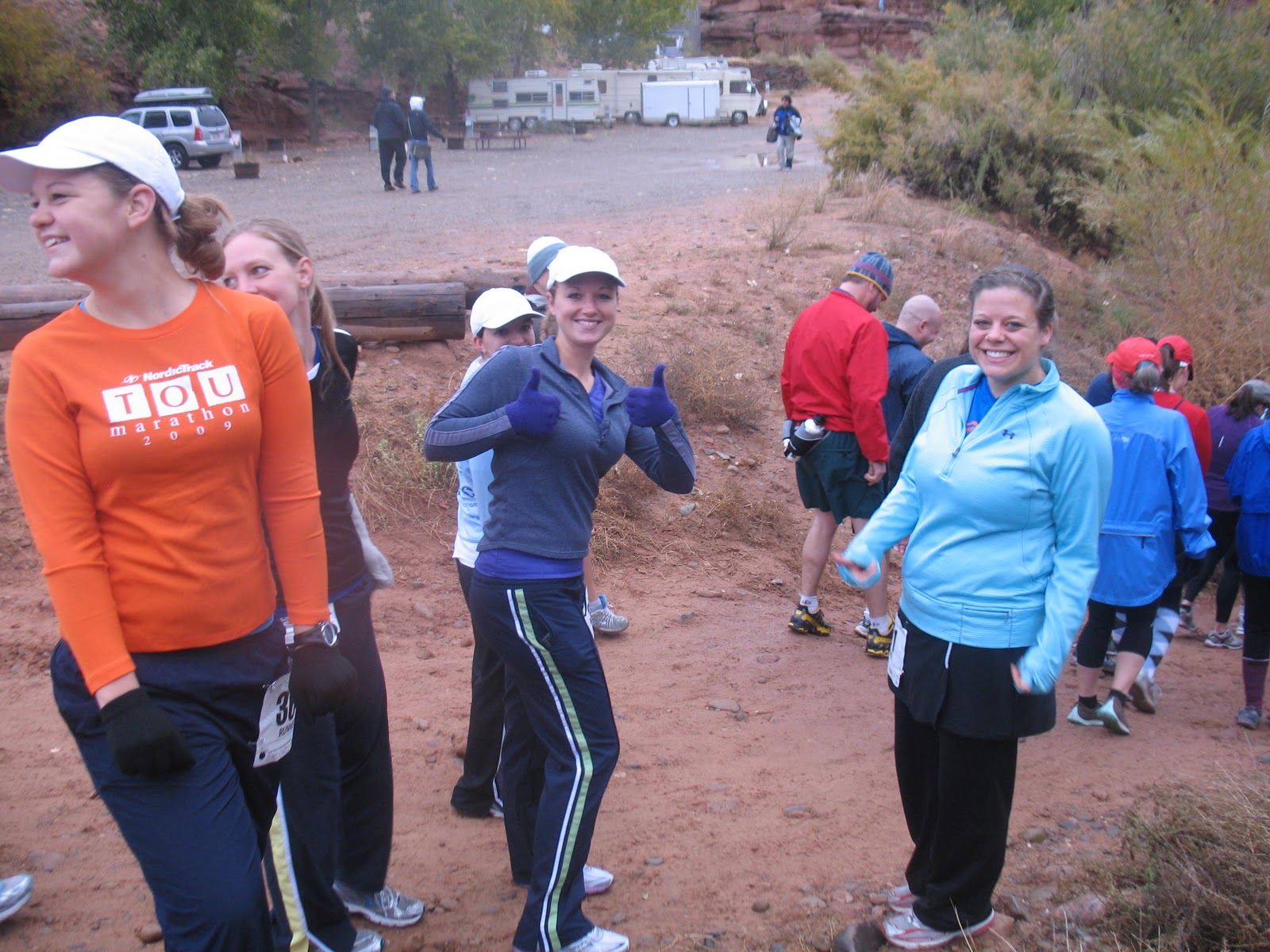 It's just after dawn, it's cold, it's rainy, I'm with a gaggle of about 200 runners all wearing leggings and long sleeves huddled around a "Start" banner in the middle of the red rock desert near Moab, UT. Offspring is blasting through the morning dampness as a feeble attempt to pump up the hardy souls who came out for this race.