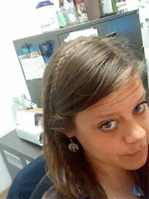 So I have this shiny copper headband thing that doesn't look much like hair if you ask me, but people always ask me if it's my hair and I always think, "How would I even make my hair into a shiny copper three stranded headband?!" So today I had some time at work....a lot of time and I sort of did it! (except with one braid not three)